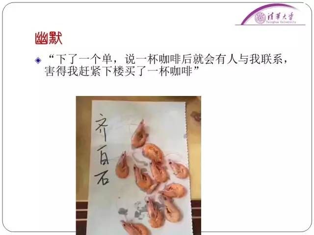 那么还有一些事情,对于我们而言是非常容易的,可是人工智能处理起来依然比较困难。比如说理解幽默、比如联想能力、比如说漫画识别等等。这些方面上至老人下至三岁小孩,我们的水平都比人工智能高很多。比如我举一个例子,这是一个真实的事情,有一天我买东西,下了一个单,客服说一杯咖啡后,就会有人与我联系,害得我赶紧下楼买了一杯咖啡,很显然我做了一件十分搞笑的事情,我们正常人都能明白,但是机器就不知道幽默点在哪里。