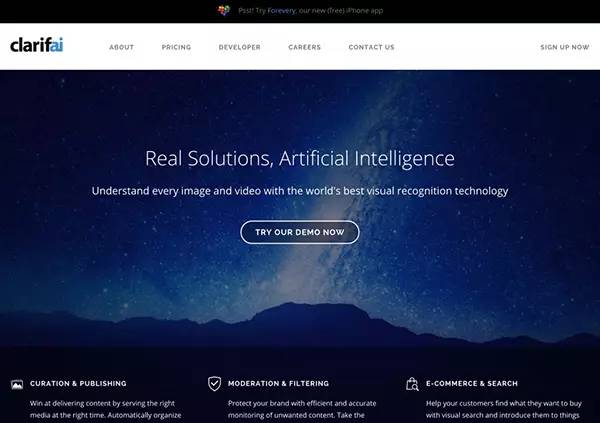 从一个完全不同的角度来看,Clarifai 是一种可以识别图像和视频内容的人工智能服务。 它有自己的深入学习引擎,经过每次使用都会不断改进。如果你热衷于将 AI 原型提升到一个全新的水平,为什么不给予它查看和识别对象的能力? 它可以从标记图像,搜索视觉上相似的其他图像和标记不适当的图像来做各种各样的事情。如果你想把它提升到一个新的水平,你甚至可以用自己的例子来训练平台引进全新的概念。