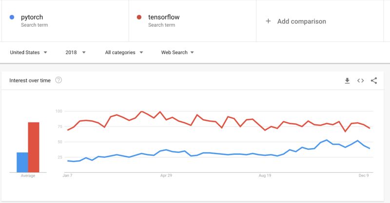 说到框架,今年的“人工智能框架之战”愈演愈烈。令人惊讶的是,就在Pytorch 1.0发布时,Pytorch似乎正在赶上TensorFlow。虽然在生产中使用Pytorch的情况仍然不是最理想的,但是Pytorch在这方面的进展似乎比Tensorflow在可用性、文档和教育方面的进展要快。有趣的是,很可能选择Pytorch作为框架在实现Fast.ai库上扮演了重要角色。话虽如此,谷歌意识到了这一切,并正在朝着正确的方向推进,如将Keras作为最高级而纳入框架,或者增加像Paige Bailey这样的以开发人员为中心的关键领导。最后,我们都能从这些伟大的资源中获益,所以请继续努力吧!