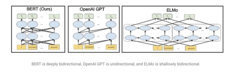 (图)BERT是深度双向的,OpenAI GPT是单向的,而ELMo是浅双向的