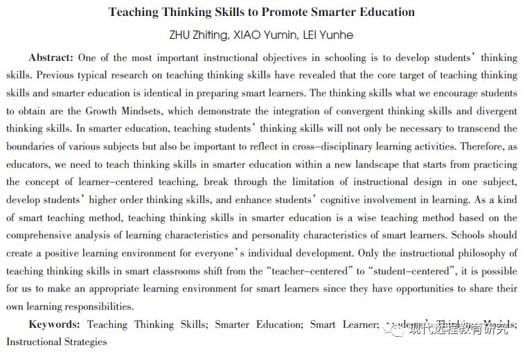 关键词:思维教学;智慧教育;智慧学习者;学生思维模型;教学策略