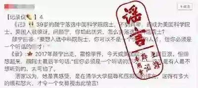 据上观新闻报道,4月30日,中国女科学家颜宁入选美国国家科学院外籍院士。不久,网上开始流传一个帖子称,颜宁曾被问及此前落选中科院院士的原因,她回答:“要想入选中科院院士,你可以不是一个优秀的人才,但你必须是一个听话的奴才……”