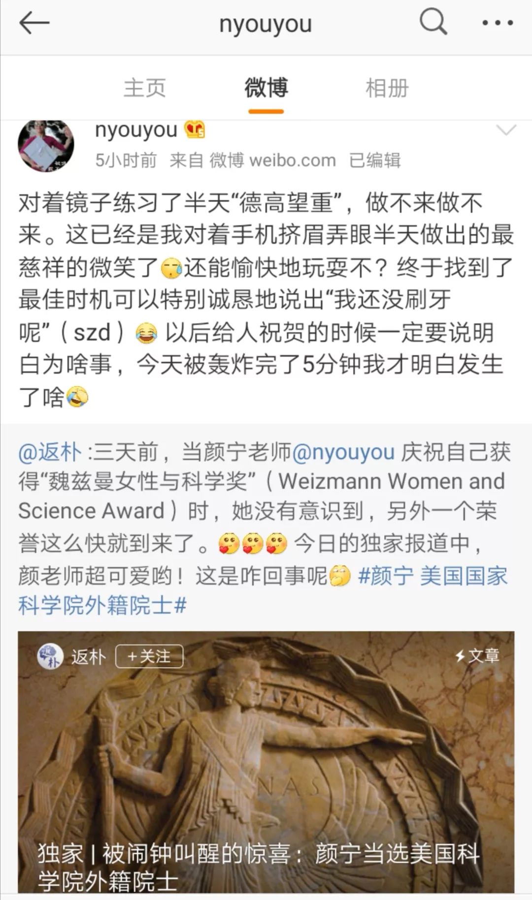 虽然是科学学霸,学术生涯也看似开挂,但是颜宁并不是两耳不闻窗外事,一心专到分子里不苟言笑的科学家。