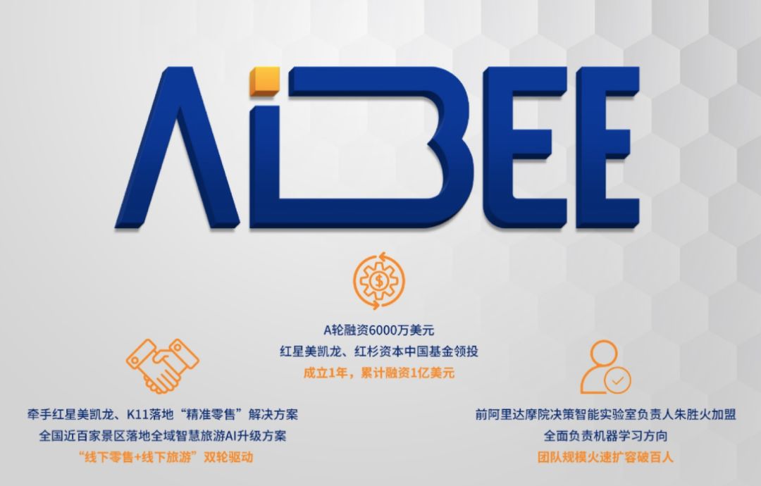 11 月 27 日,人工智能整体解决方案企业 Aibee 宣布获得 6000 万美元 A 轮融资,此轮融资由红星美凯龙、红杉资本中国基金共同领投,联想创投等机构跟投。成立 1 年,Aibee 总融资额已达 1 亿美元。