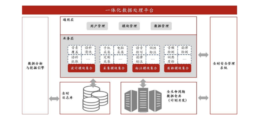 与一体化数据处理平台相配合,海天瑞声还建立了全时日志库及终端人管理系统,实现平台内操作留痕、透明可追溯和平台内不同角色的严格权限分级,确保数据安全。