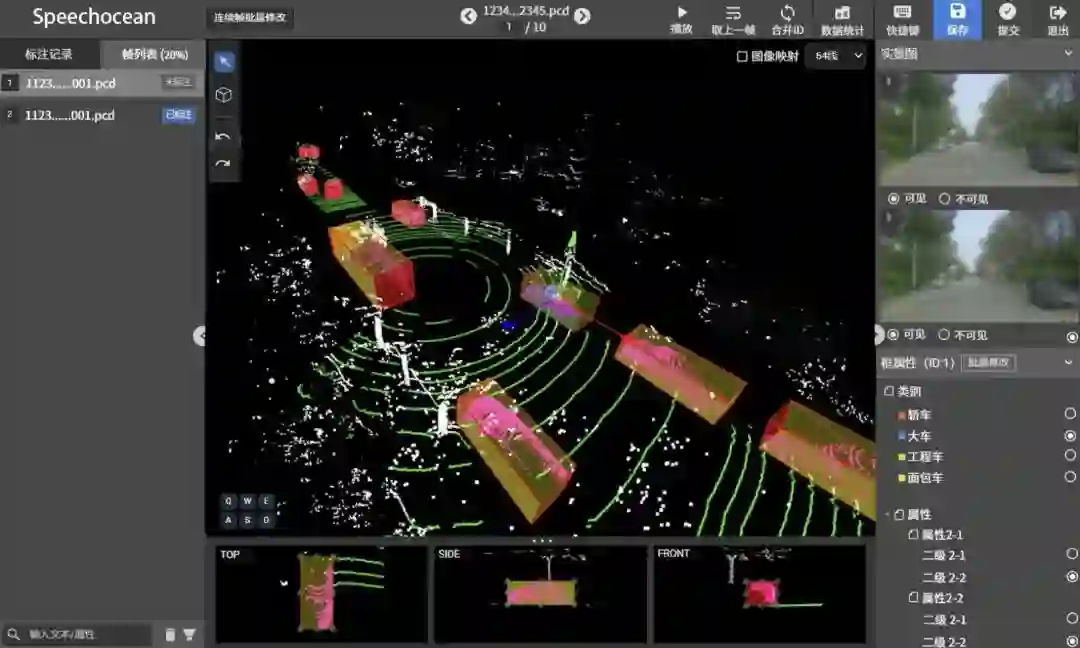 其次,这一标注平台覆盖自动驾驶场景下不同类型数据的标注工具,能够大幅提升标注效率。例如,平台支持 3D 点云标注、3D 点云连续帧标注、3D 连续帧与 2D 联合的标注、3D 语义分割等,还可根据客户的个性化需求对平台工具进行二次开发,当属业内领先。