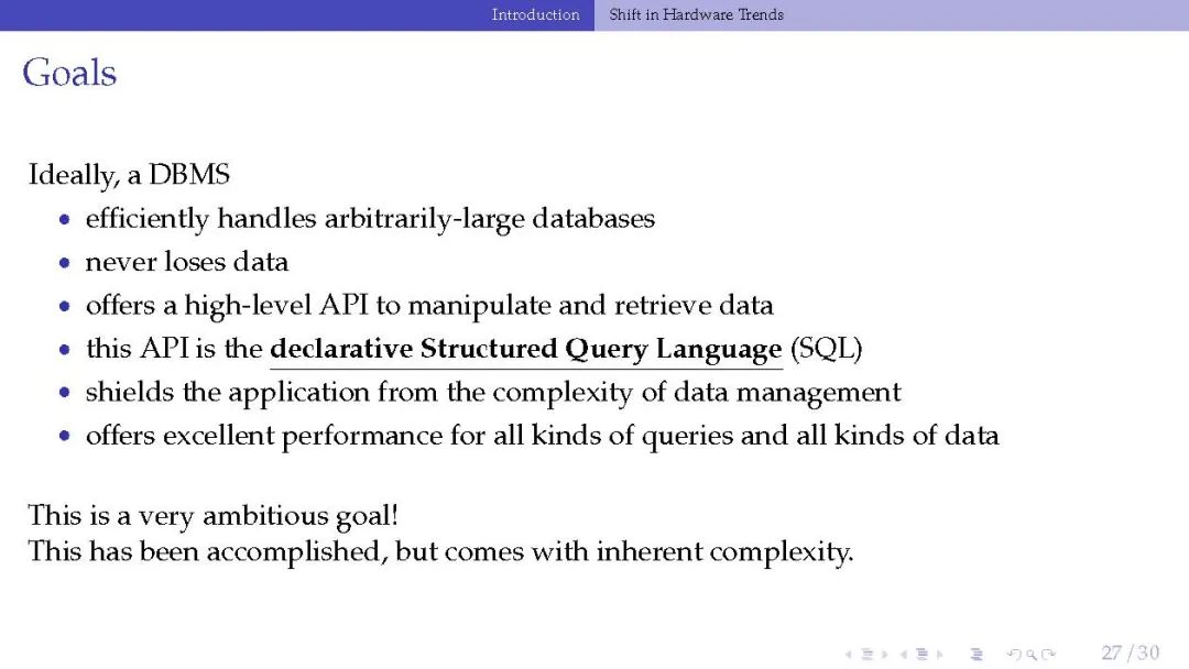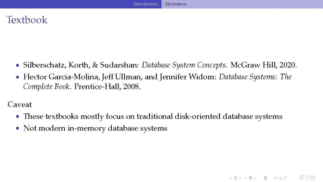 本课程是讲座和编程作业的结合,其中我们将学习现代数据库管理系统的内部原理。它将涵盖在高性能事务处理系统(OLTP)和大型分析系统(OLAP)中使用的组件的核心概念和基础。这个类将强调这些思想实现的效率和正确性。本课程适用于对系统编程感兴趣的高级本科生和研究生。