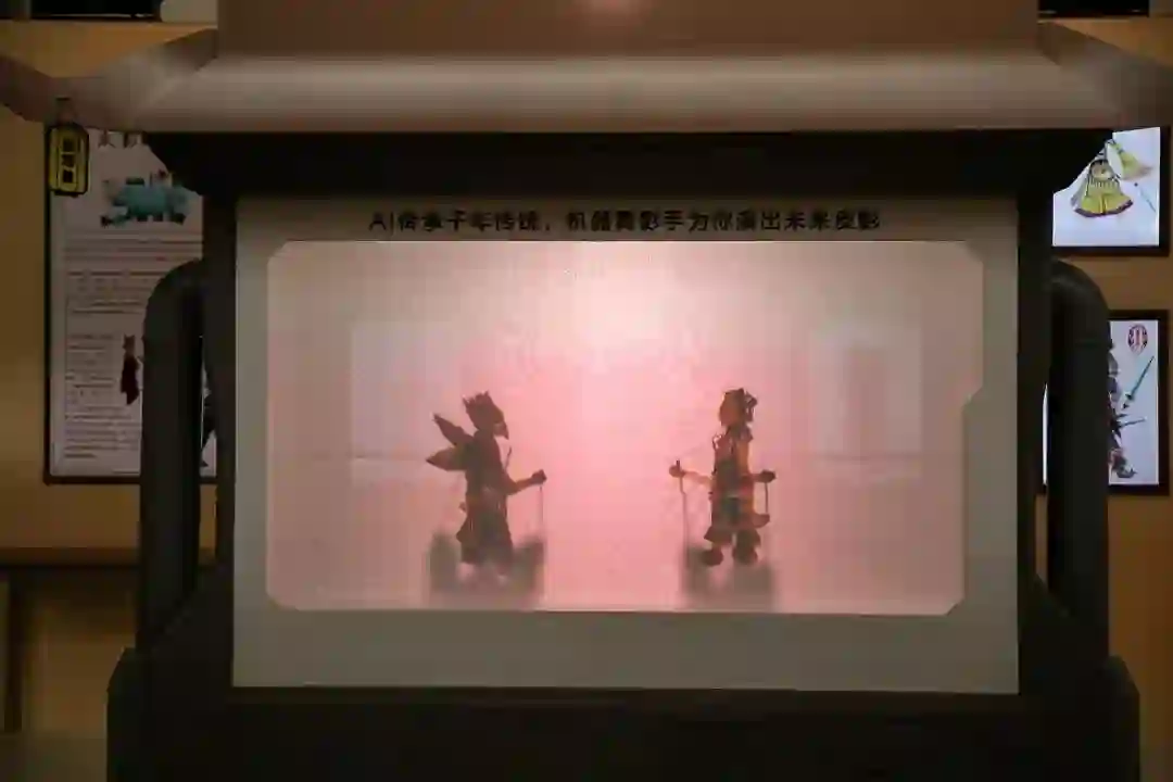 铁汉亦有柔情时,看似憨直的机器其实还能做更多微妙的操作。来自清华的墨甲机器人乐队,让充满科幻感的仿真机器人抱起了箜篌,拿起了竹笛,为参观者演奏了一首国风音乐,感觉很「三体」。也有团队让机器人变成「舞影手」,在一片帷幕后为大家上演了一出传统皮影戏。