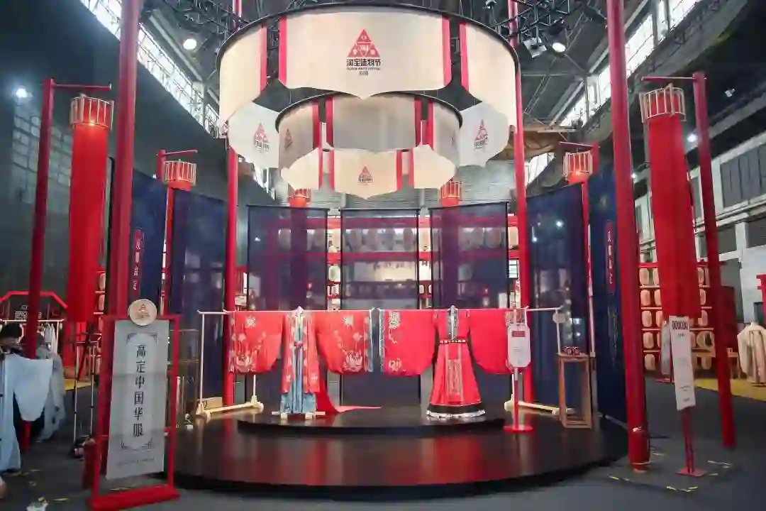 穿过科技展区,进入国风和潮流展区,你会感觉穿越了几十个时代。「国风高定」的红色汉服映入眼帘,各种小姐姐对着宽衣大袖的「汉服」不停拍照;青花瓷、古代榫卯搭建的乐高玩具玩出了古今结合的混搭风。国风旁边则是「洛城」风情街,潮流球鞋、黑胶唱片、豹纹内衣,满足你心中的「加州梦想」。
