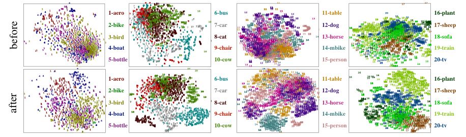 图四:此图展示了使用了我们的方法之后,图像特征分布的变化。