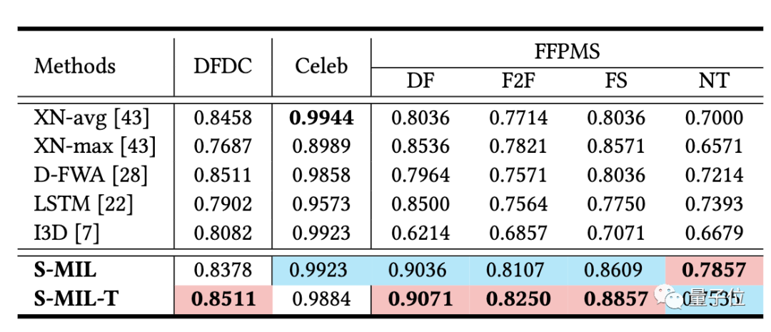 研究人员在DFDC、Celeb和FFPMS数据集上对S-MIL进行了评估。