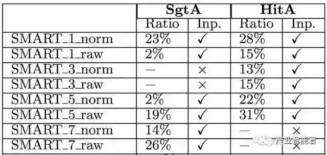 通过检测每一个SMART属性,本文得到了下表中展示的结果(只展示部分结果)。在表格中,SgtA和HitA分别表示希捷和日立的磁盘型号,Ratio表示磁盘替换前该属性值出现突变的比例。我们可以看出有些SMART属性确实与磁盘替换无关,而且对于不同型号的磁盘,与磁盘替换事件相关的SMART属性是不相同的。