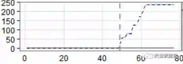 下图展示的是SMART_187_raw(无法纠正的错误)的折线图,这是报告给操作系统的无法通过硬件ECC校正的错误。如果数据值不为零,就应该备份磁盘上的数据了。从图中可以看出在第50天的时候,SMART_187_raw值突然增大,即第50天为突变点。