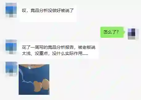报告交上去后,却被导叫到办公室,领导说他选的竞品不够核心,而且分析太浅,没重点,根本没有实际参考作用,要求重新提交一份新的分析报告。