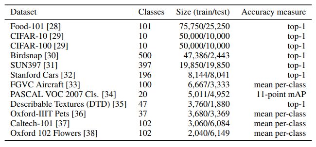 在本文中,研究者试图通过研究 ImageNet 特征和 ImageNet 分类架构的可迁移性来检验这些假说。具体而言,研究者在 12 个图像分类数据集上对 13 个性能最好的图像分类卷积神经网络间的迁移学习进行了大规模的研究,实验环境如图 1 所示,包含以下三种类型:固定的特征提取器 [2,3],从 ImageNet 的初始化 [8,11,12] 环境中进行调优,从随机初始化开始训练。本文的主要贡献如下: