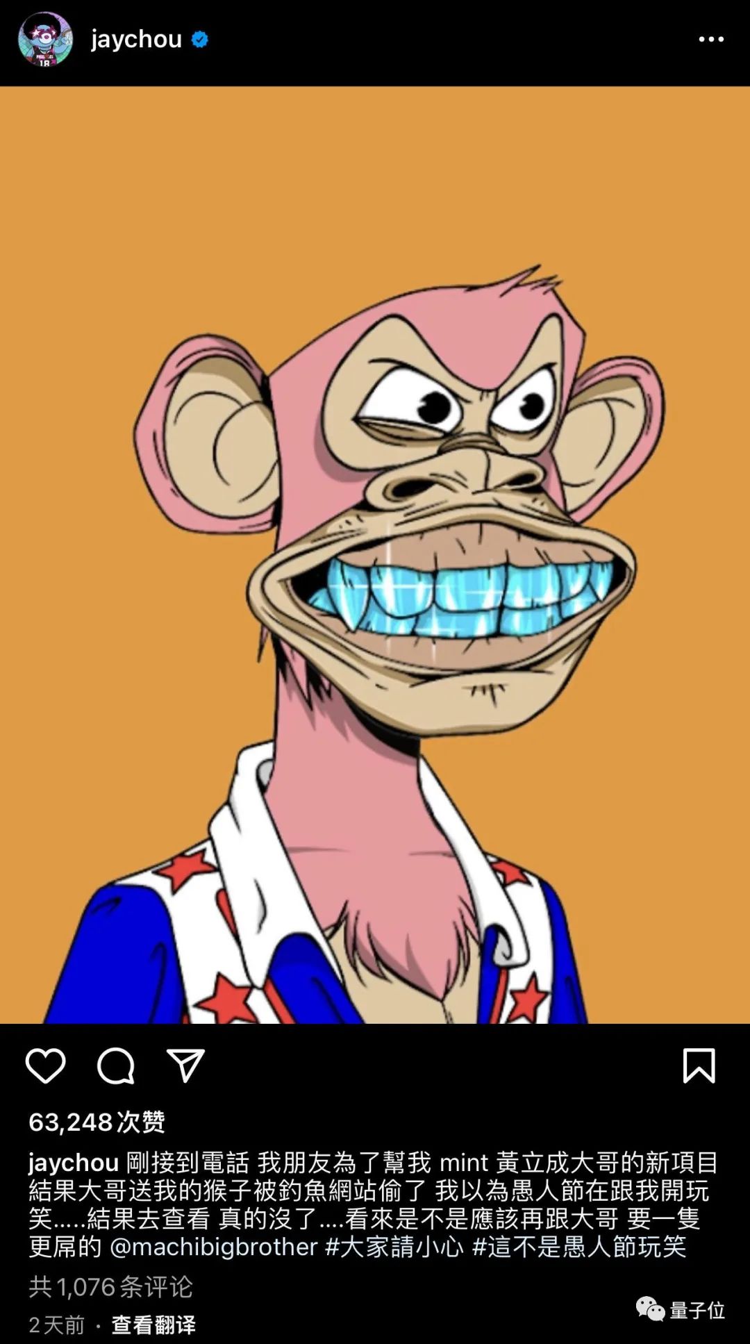 愚人节当天,周董称自己的NFT被盗。还特意强调,这并不是玩笑。