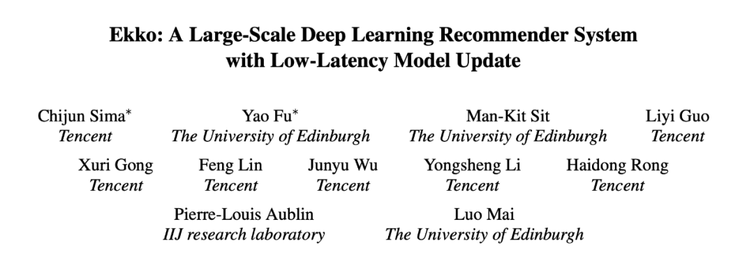 应对上述问题和挑战,本文实现了 Ekko 系统,一个创新的大规模 DLRS,能够全局地更新模型备份并实现低延迟。Ekko 系统设计的主要贡献包括以下两个方面: