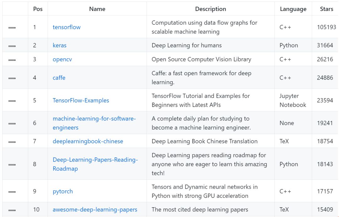 就在上月,深度学习研究员 Mahmoud Badry 又根据 GitHub 上的 Star 数量做了一个了深度学习项目排行榜。其中 TensorFlow 稳居榜首,Star 的数量超过 10 万,是二名 Keras 的 3 倍之多。