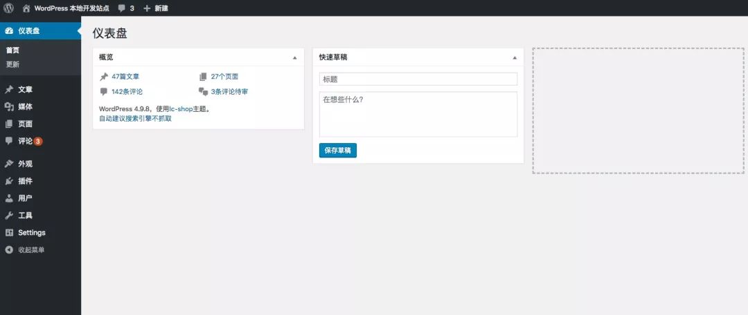 当你安装好 WordPress 后,你可以看到一个这样的后台。