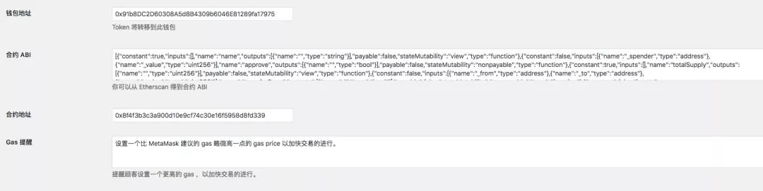Gas 提醒这里是用来提醒用户支付时选择较高的 Gas ,从而加快确认的速度。你可以根据自己的需要设置具体的内容,也可以使用默认的语句。