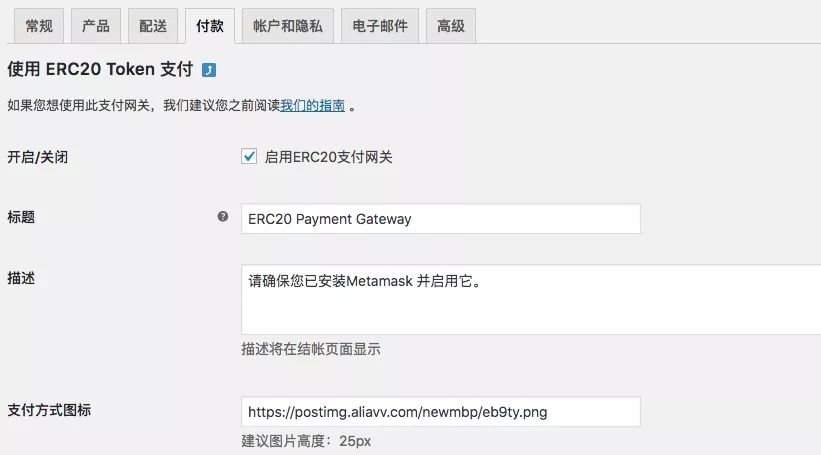 支付方式设置完成后,接下来设置与 ERC20 通证有关的内容。