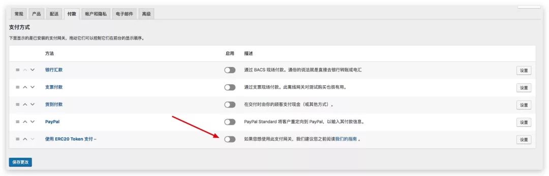 在设置页面,启用 “使用 ERC 20 Token 支付”这一支付方式,并保存。