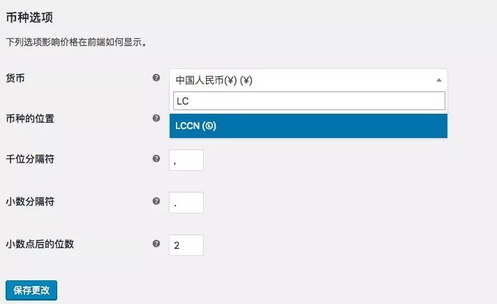 在插件的设置界面,你可以设置需要添加的货币的名称和对应的符号。比如这里我设置为 “LCCN” 和 “Ⓛ”,并点击“保存”。