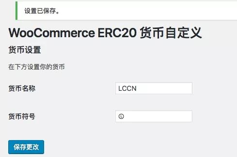 启用插件后,点击左侧菜单中的“设置”-“WooCommerce ERC20 货币自定义”,进入到插件的设置界面。