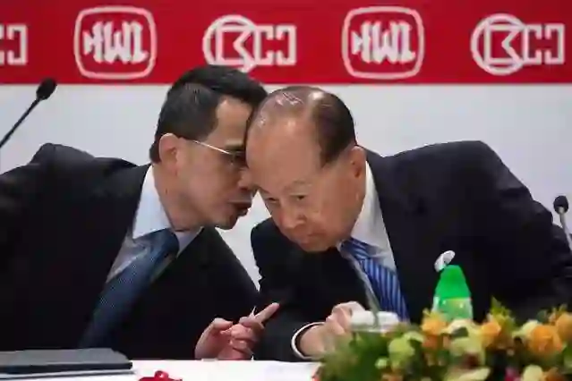 李嘉诚和李泽钜共同出席一个在香港举办的新闻发布会