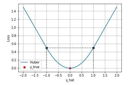 时 MAE 和 MSE 的取值一致,进而保证 Huber Loss 损失连续可导。