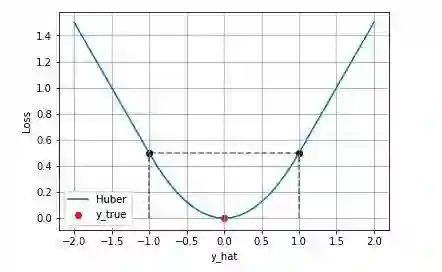 上文我们分别介绍了 MSE 和 MAE 损失以及各自的优缺点,MSE 损失收敛快但容易受 outlier 影响,MAE 对 outlier 更加健壮但是收敛慢,Huber Loss 则是一种将 MSE 与 MAE 结合起来,取两者优点的损失函数,也被称作 Smooth Mean Absolute Error Loss 。