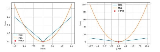 当然你可以通过在训练过程中动态调整学习率缓解这个问题,但是总的来说,损失函数梯度之间的差异导致 了 MSE 在大部分时候比 MAE 收敛地更快。