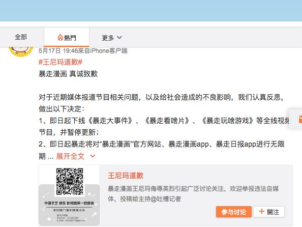 如今,暴走漫画再一次卷入风波之中,“侮辱英烈”事件持续发酵。这一事件有其必然性。事件发生之后,5月17日晚间,暴走漫画CEO任剑宣布,对于近期节目相关问题,决定即日起下线《暴走大事件》、《暴走看啥片》、《暴走玩啥游戏》等全线视频节目,对“暴走漫画”官方网站、暴走漫画app、暴走日报app进行无限期关停整改。
