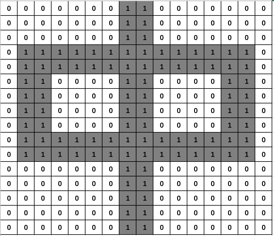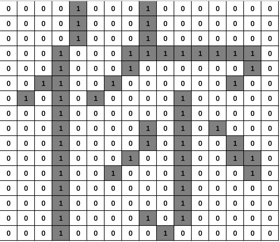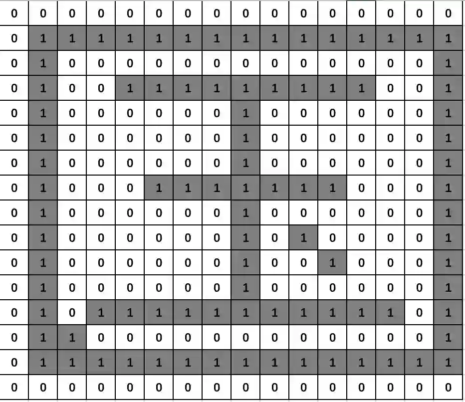 这就需要依赖字形码,字形码本质上是一个n*n 的像素点阵,把某些位置的像素设置为白色(用 1 表示),其它位置像素设置为黑色(用 0 表示),每一个字符的字形都是预先存放在计算机内,而这样的字形信息库我们称为字库。