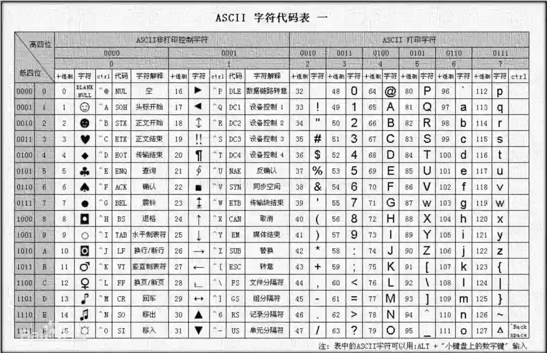 ASCII 编码(注意该表是列表示字节高 4 位)