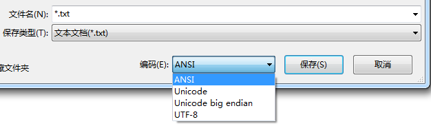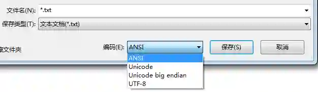 这些既兼容ASCII又互相之间不兼容的字符编码,后来又统称为ANSI编码。看到下面这张图估计大家就很熟悉了,window下面我们基本上都用ANSI编码保存。