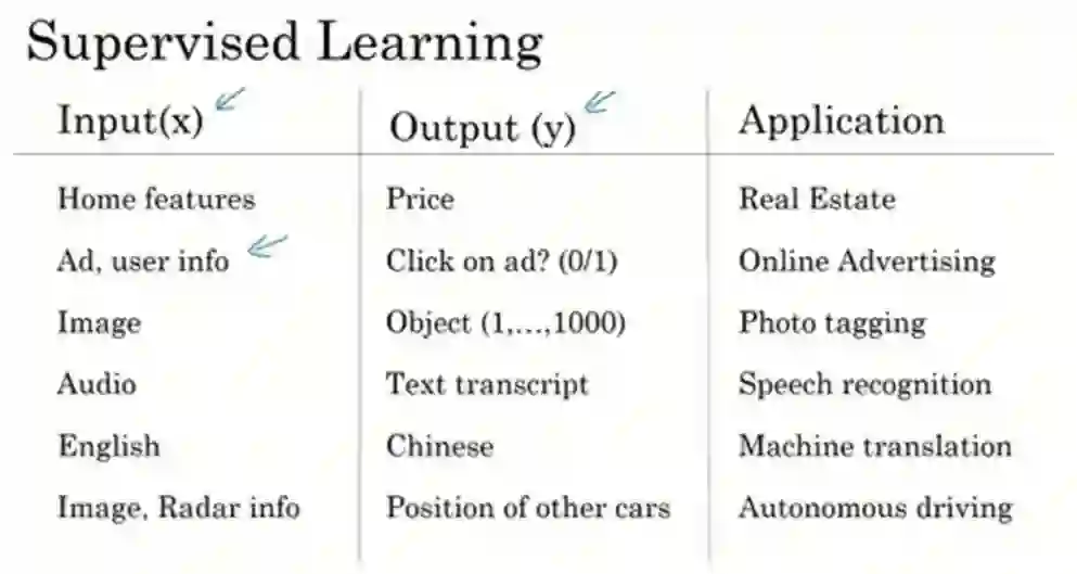 关于神经网络也有很多的种类,考虑到它们的使用效果,有些使用起来恰到好处,但事实表明,到目前几乎所有由神经网络创造的经济价值,本质上都离不开一种叫做监督学习的机器学习类别,让我们举例看看。