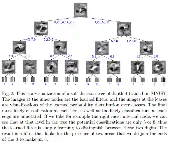 他们的研究表明,尽管更简单的神经网络的表现比他们的研究要好,但蒸馏确实起到了一点作用。在MNIST数据集上,经过蒸馏的决策树模型的测试准确率达到96.76%,较基线模型的94.34%有所提高。然而,一个简单的两层深卷积网络仍然达到了99.21%的准确率。因此,在性能和可解释性之间存在权衡。