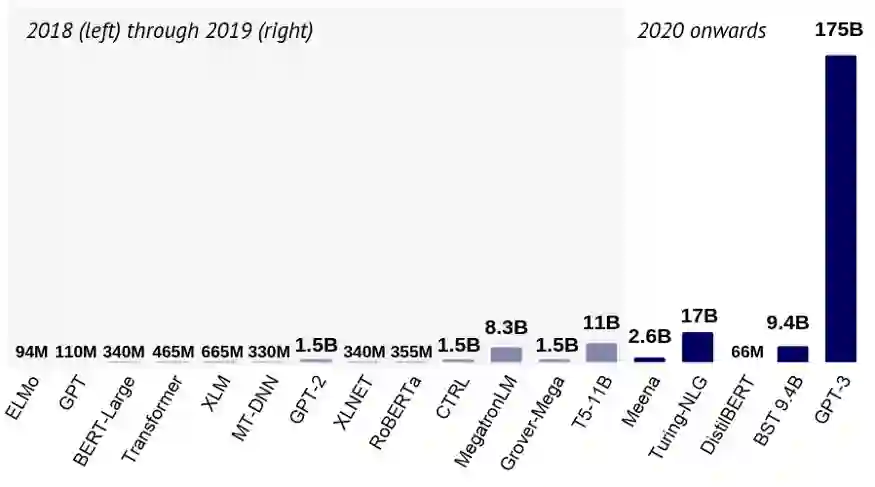 为了说明这一点,参见下图中的NLP中最常见架构的参数数量。
