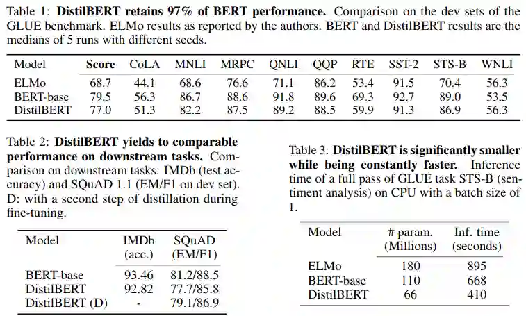 较小的架构需要更少的时间和计算资源:在8个16GB V100 gpu上花费90小时。如果你对更多的细节感兴趣,你可以阅读原始论文"DistilBERT, a distilled version of BERT: smaller, faster, cheaper and lighter"或者文章的综述,写的很精彩,强烈推荐。