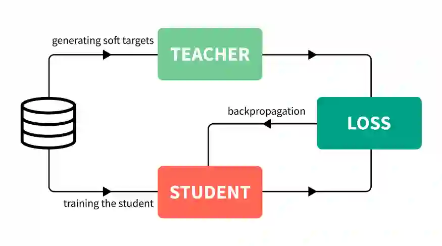 因此,与转移学习相反,知识蒸馏不会直接使用学到的权重。
