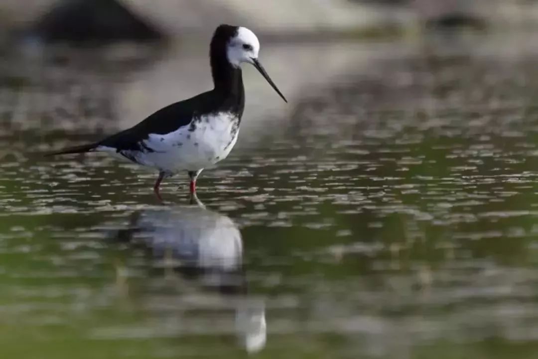 黑长脚鹬和黑翅长脚鹬的自然混种 2011年11月拍摄于蒂卡波湖附近丨nzbirdsonline.org