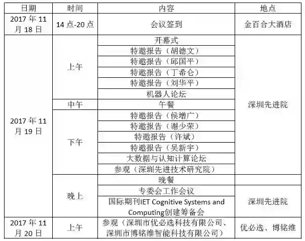 为了推动人工智能和认知机器人相关领域的研究、促进产业发展,中国自动化学会认知计算与系统专业委员会、中国人工智能学会认知系统与信息处理专业委员会和自动化学报编辑部主办,中国科学院深圳先进技术研究院承办,深圳自动化学会大力支持的“认知机器人与人工智能学术研讨会暨第一期自动化前沿热点论坛”将于2017年11月18日-11月20日在深圳举行。