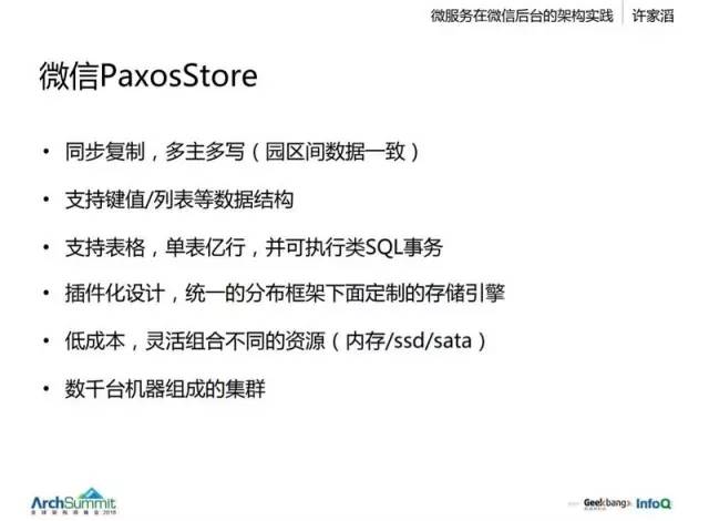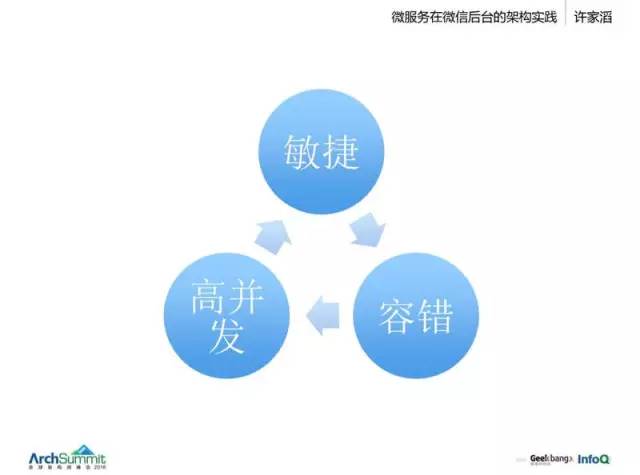 首先,我们需要敏捷开发。过去几年,微信都是很敏捷地在开发一些业务。所以我们的底层架构需要支撑业务的快速发展,会有一些特殊的需求。
