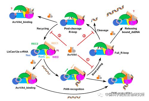 与其他已知Acr蛋白的单一抑制机制不同,AcrVA4能够在反应过程中的多个步骤影响Cas12a发挥活性。