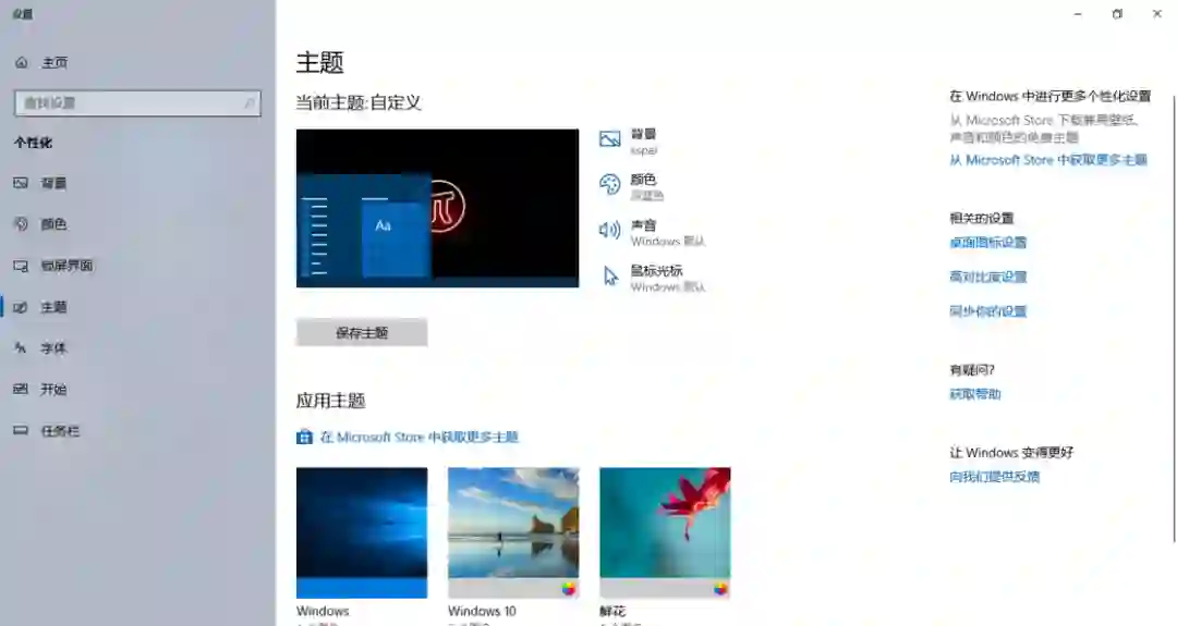 「主题」中已经没有「屏幕保护程序」了