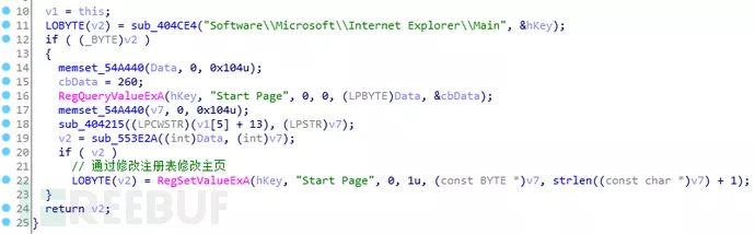(2)其次,在core.dat核心功能模块中,通过修改注册表的方式篡改用户主页: