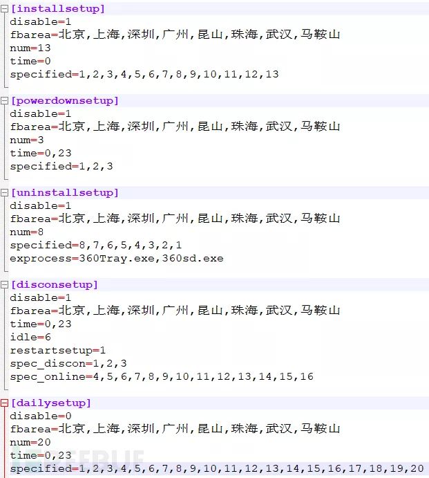 我们发现,在配置文件中,主页篡改、图标推广、广告弹窗和软件推广,除规避“北上深广”一线城市外,还规避了昆山和马鞍山。
