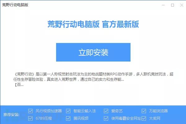 该虚假下载器无签名,无版本信息,点击“立即安装”会下载运行“蜻蜓助手”,而不是用户预想的“荒野行动网易版”。
