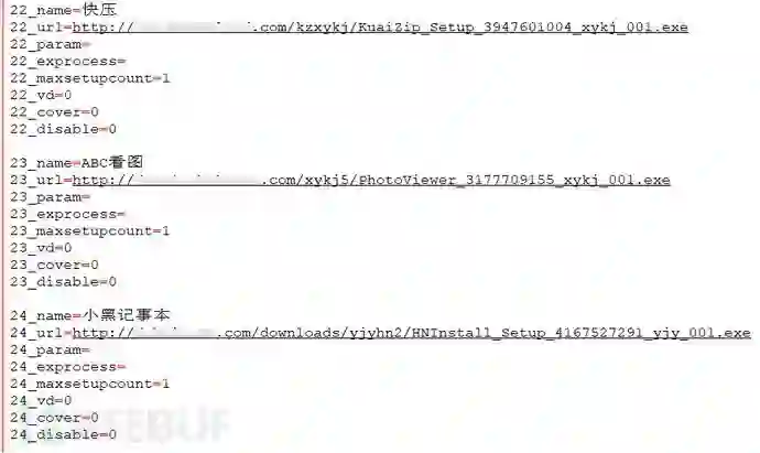 其中,广告弹窗,软件推广,图标推广和主页劫持的具体内容,均由云端进行配置,通过下发文件的形式,在本地解析执行;